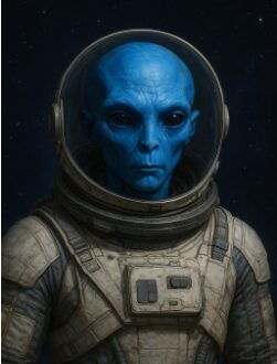 姿は青い肌のグレイみたいですね。いやしっかり宇宙服を着ています。ここの空気が体に合わないのでしょう。宇宙服がレンタルですかね。旧式です。