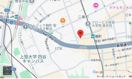 拡大したのがこれ。四ツ谷駅からだと参議院宿舎前という信号を左折。か、有楽町線麹町駅から5分ですね。